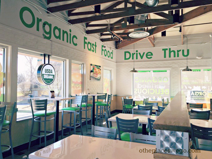 Kids meals are available as well. Choose from an organic hamburger, organic cheeseburger, organic veggie burger or 4-piece organic nuggets, paired with organic fries and organic applesauce. Crayons are also included for coloring the bag that the food comes in.