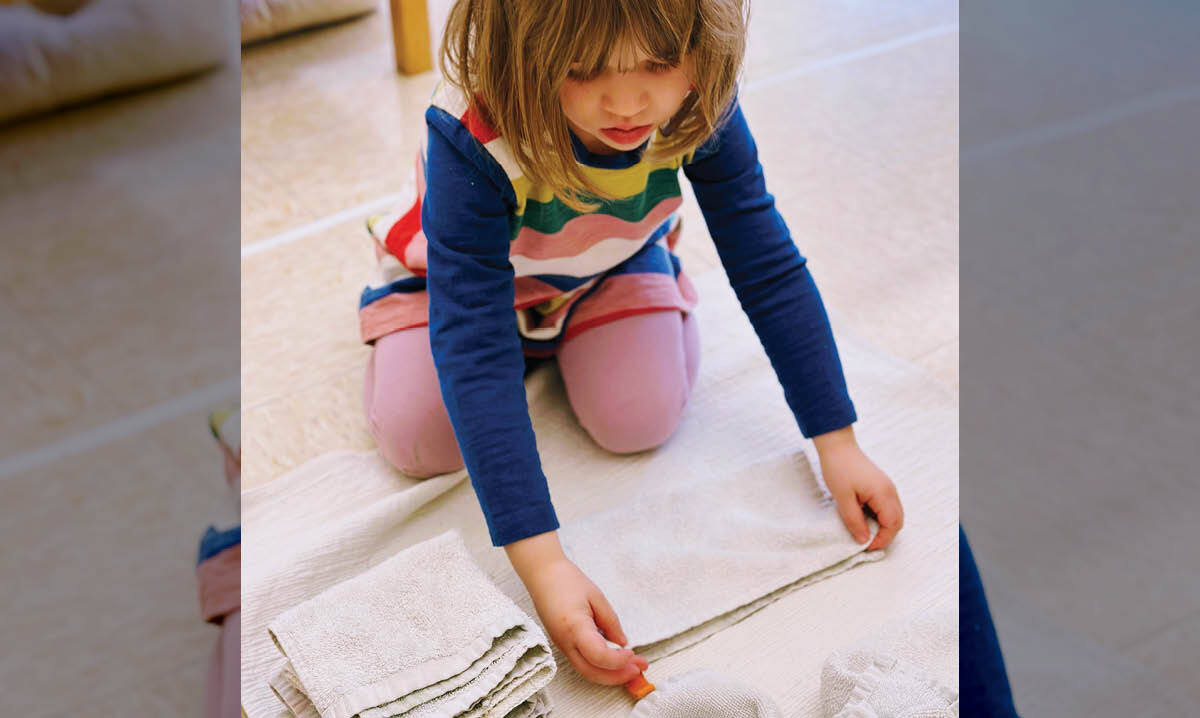 “Think about preparing your home for guests. What does that look like? What might make guests feel welcome in your home?” Mark asks. “We know young children want to do what they see adults doing. It’s a natural desire for them to do purposeful work.”