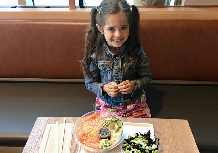 Poke, pronounced “Poh-KAY” (like “okay”), is a Hawaiian treat involving a bowl (or now a taco, burrito, or even an ice cream cone) full of sushi/sashimi fish and a variety of sauces, vegetables and other assorted goodness the menu or your whims dictate. While Chicago is a long way from the Aloha State, poke seems to be our new official dish, because you can’t swing a tuna without hitting a new poke bowl spot. There’s even poke bowls in the grocery stores now — and while the Mariano’s take may not be as adventurous as many restaurant versions, it’s hard to find a bad poke bowl. My family is hooked, and even 6-year-old Viva looks forward to this generous helping of deconstructed sushi and mesmerizing combination of colors, aromas and mouthfeel.