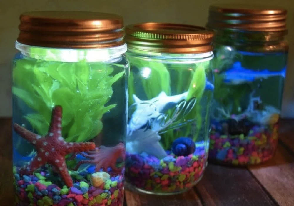- Fill light-up aquarium jars. Recreate the fish tank in Philip Sherman’s dentist office. These fun light-up mason jars will go great with some toy fish figurines.