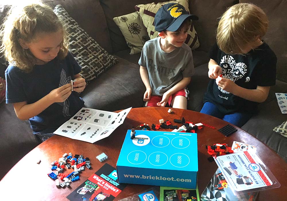 So what was in the kit that we tried out? With the theme of “Game On,” we knew it was going to be good. A Speedway racer arcade game, an LED light kit to put atop your creation, and an Arcade Mystery LEGO minifigure kept the fun going for my 8 and 6 year-olds (thanks to detailed instructions and well-sorted packaging), and as for my 4 year-old? He was thrilled with his new Pinky’s Arcade Pac-Man hat (although the retro-cute topper is adjustable and might take a few side trips with Mom). These kits, with the option to subscribe every 1, 3, 6 months, or 1 year, are a great value for the brick fanatics in your life — or even for yourself. After all, Brick Loot’s clientele breakdown is 30% adults and 70% kids. (Why should the kids have all the fun?)
