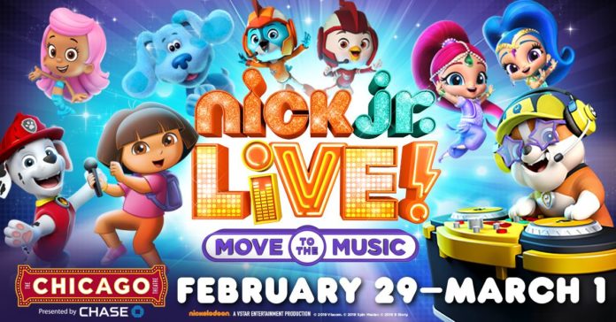 Sing and move to the music with your friends from Bubble Guppies, PAW Patrol, Dora The Explorer, Shimmer and Shine, Blue’s Clues and more in an unforgettable musical spectacular! Playing at The Chicago Theatre from Feb. 29 to March 1, Nick Jr. Live! “Move to the Music” follows Dora and her PAW co-hosts, Marshall and Rubble, as they team up with their Nick Jr. friends, live on stage together for the first time ever, in a music adventure sure to excite the whole family!