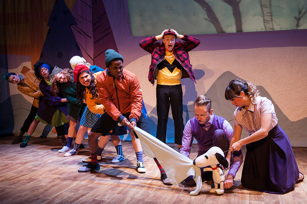 Fans of the iconic, gentle “Peanuts” television classic (created by Bill Melendez and Lee Mendelson from Charles M. Schulz’s cutie-pie crew) will rediscover the true meaning of Christmas in Emerald City Theatre’s “A Charlie Brown Christmas” at the Broadway Playhouse. And how do you turn a 25-minute holiday special into a fully staged production, you might ask? Artistic Director Ernie Nolan has the answer: With more sweet character asides, musical interludes and dance breaks than you can shake a shiny metallic tree at.