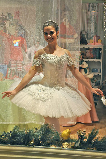 The production begins every evening at 6:30 p.m., when the window featuring Clara lights up. After Clara dances, her window goes dark and the action moves on to the swan, Spanish dancer and finally the Sugar Plum Fairy.